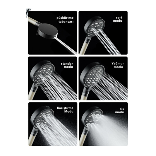Filtreli Duş Başlığı 6 Fonksiyonlu – Kireç Önleyici Basınç Artırıcı Duş Başlığı (3 Filtre Hediyeli)