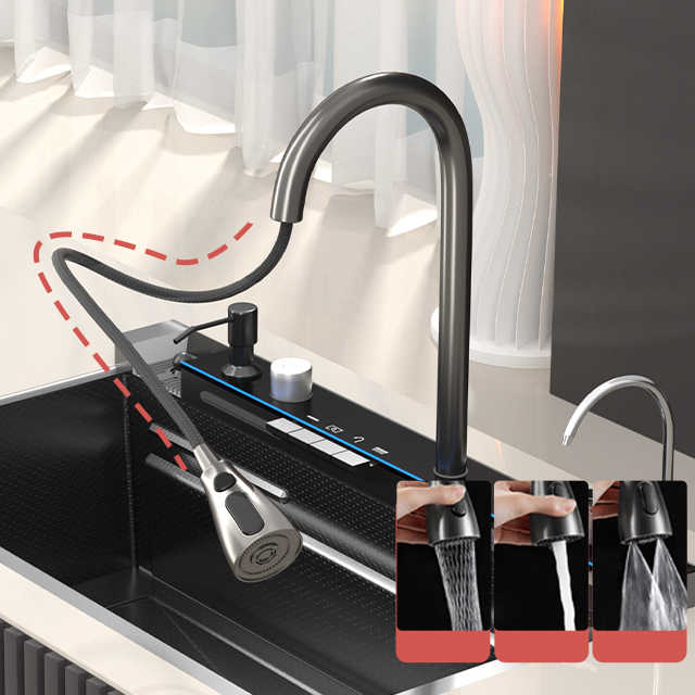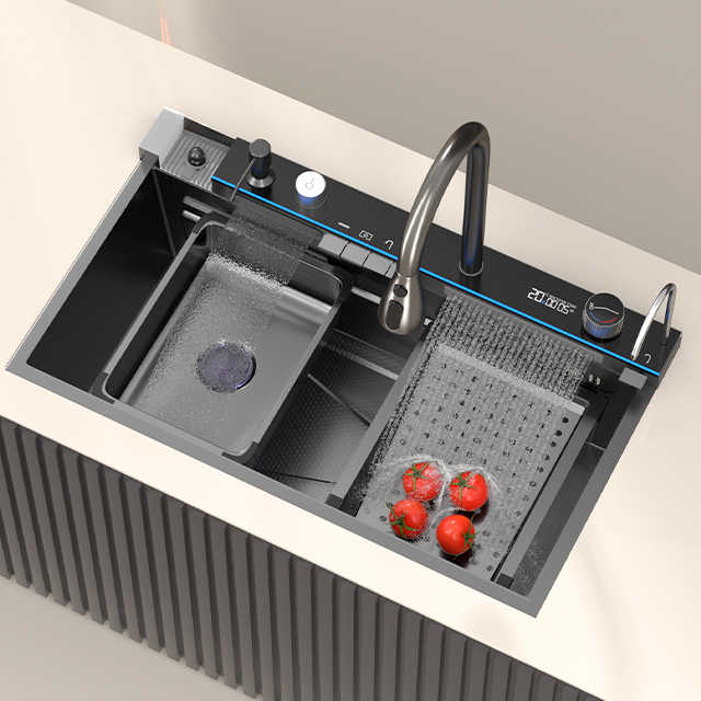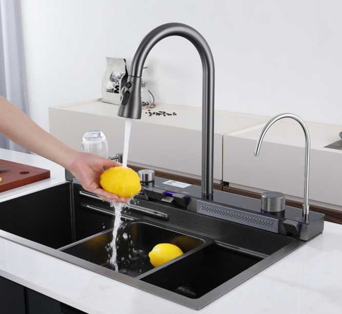 Akıllı Dijital Çok Fonksiyonlu Mutfak Evyesi – LED Ekranlı, Otomatik Su Akışı ve Filtre Sistemli Set