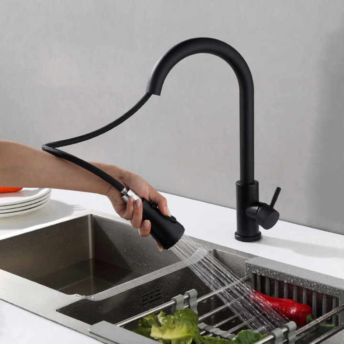 360° dönebilen, esnek hortumlu tasarımıyla mutfağınıza pratiklik katın. Sebze ve meyveleri yıkarken maksimum hareket özgürlüğü sağlar.