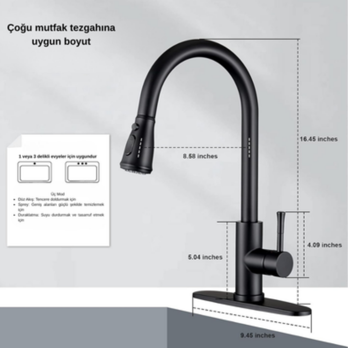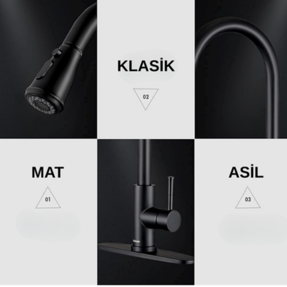 Mat siyah modern tasarımı ile mutfağınıza estetik bir dokunuş yapar. Hem şıklığı hem de dayanıklılığıyla uzun ömürlü kullanım sunar.